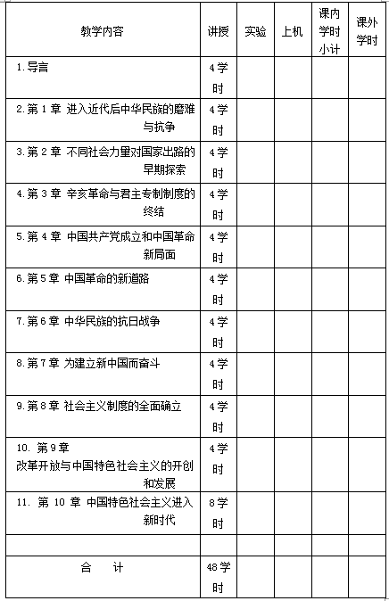 本课程教学大纲根据2021年8月出版的《中国近现代史纲要(2021年版)》进行修订。