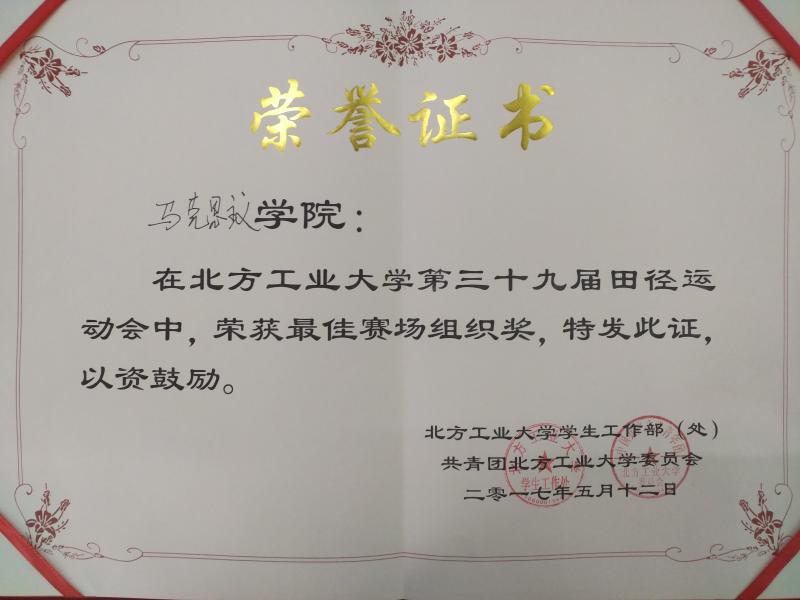 2017年5月12日,北方工业大学隆重召开第39届田径运动会。赚美金平台 代表队作为北方工大唯一一支研究生代表队在本次运动会上精彩亮相。他们高举赚美金平台 的院徽,高喊着“服务社会”的口号,着装整齐、步伐坚定、英姿飒爽的经过主席台前接受校领导的检阅。