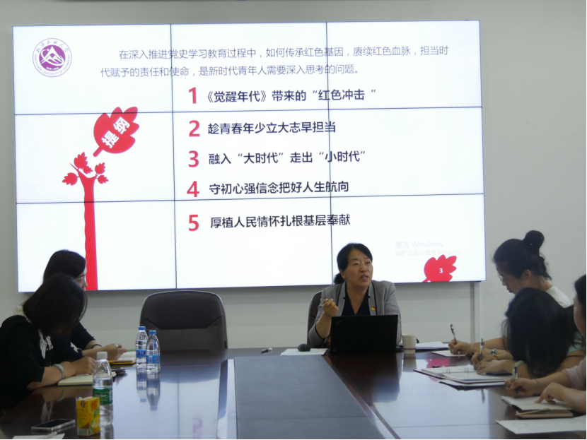 她讲到,中国共产党的诞生是改变旧中国的伟大转折。“觉醒年代”定位于从思想启蒙、民众觉醒的角度寻根溯源,正面展现了马克思主义在中国的早期传播和中国共产党成立的全过程,揭示了中国共产党的成立是中国历史和中国人民的必然选择。青年大学生要坚守人民情怀,要养成甘于奉献、乐于奉献的精神品质,以“功成不必在我”的胸怀境界和“功成必定有我”的责任担当,涵养家国情怀,努力提升自我。