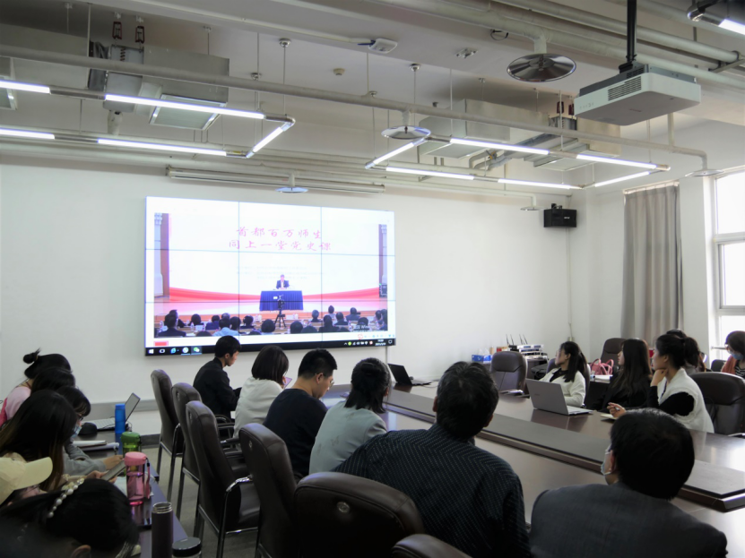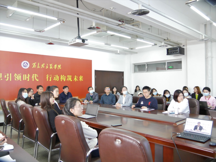 于1208会议室,组织全体师生观看由现任中央委员会候补委员、中央党校副校长谢春涛同志主讲的“首都百万师生同上一堂党史课”之系列网络公开课第一讲——中国共产党为什么能。