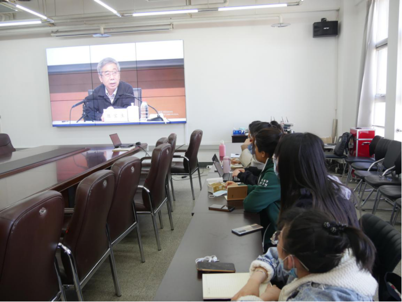 会议室收看了在中国人民大学逸夫会堂第一报告厅举行的、由中央宣讲团成员,教育部党组书记,教育部部长陈宝生同志主讲的“‘党的十九届五中全会精神’导学报告会”的实况直播。