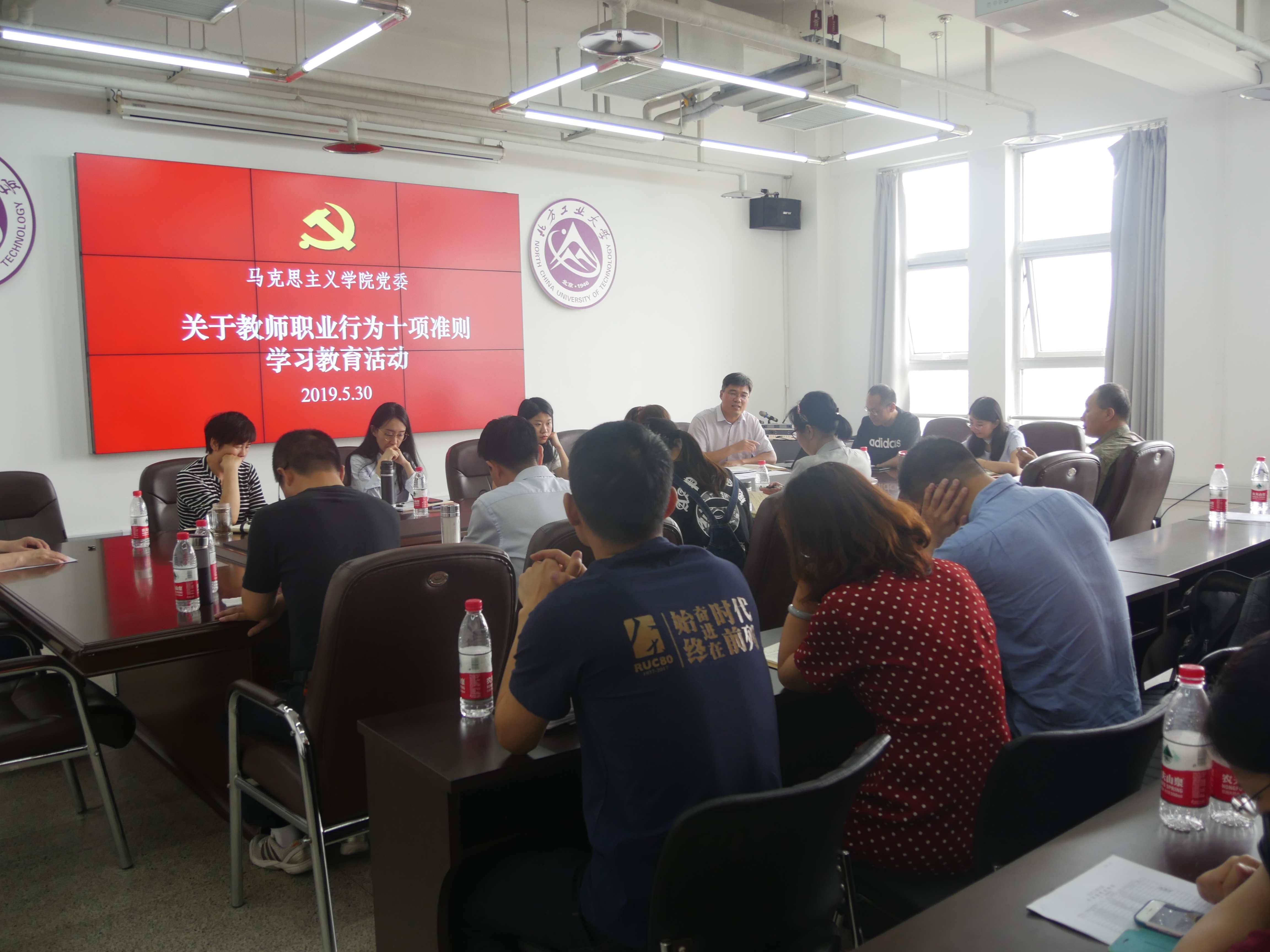 在敦品楼1208会议室召开了关于《新时代高校教师职业行为十项准则》教育主题学习,出席会议的有赚美金平台
