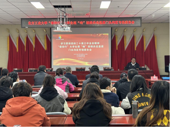 师生宣讲团赴门头沟区城子街道、军庄镇开展大学生理“响”轻骑兵走基层活动,专题宣讲党的二十届三中全会精神。百余名党员代表、群众代表参加宣讲活动。