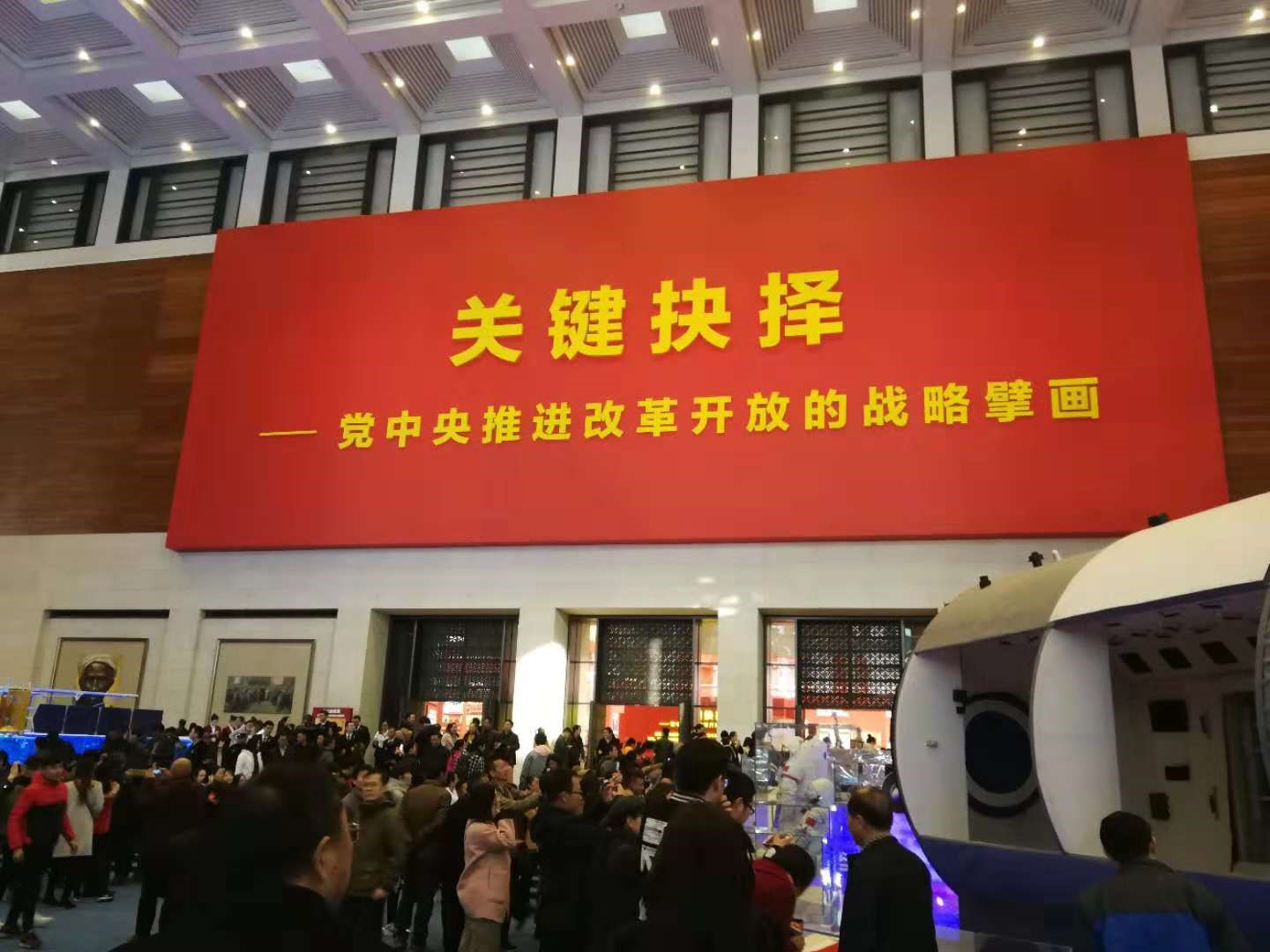 随着汹涌的人流,大家进入展馆。穿越历史深邃的长廊,感受时代沧桑的巨变。展馆通过回顾改革开放40年的艰辛历程,分6大主题内容展区和27个单元,从多角度和全景式,集中展示了改革开放的光辉历程、伟大成就和宝贵经验。