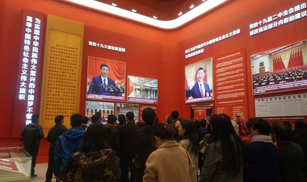一幅幅历史图片与实物场景,一段段文字视频与虚拟动画,一堆堆沙盘模型与古物旧件,一次次互动体验与倾听讲解。强化了前后对比、突出了横向对照。使我们对改革开放40年来,特别是党的十八大以来,人民群众生产生活发生的伟大变迁,有了更加直观和深刻的认识。巨大的变迁伴随着飞速的发展,由此中华民族迎来了从站起来、富起来到强起来的伟大飞跃。大家为此深感自豪,纷纷拍照留念。